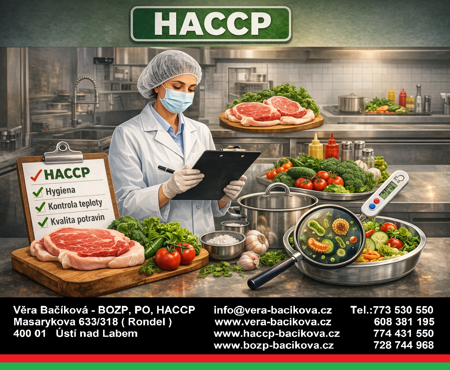 oblasti BOZP, PO, systém HACCP, hygiena práce, verifikace teploměrů